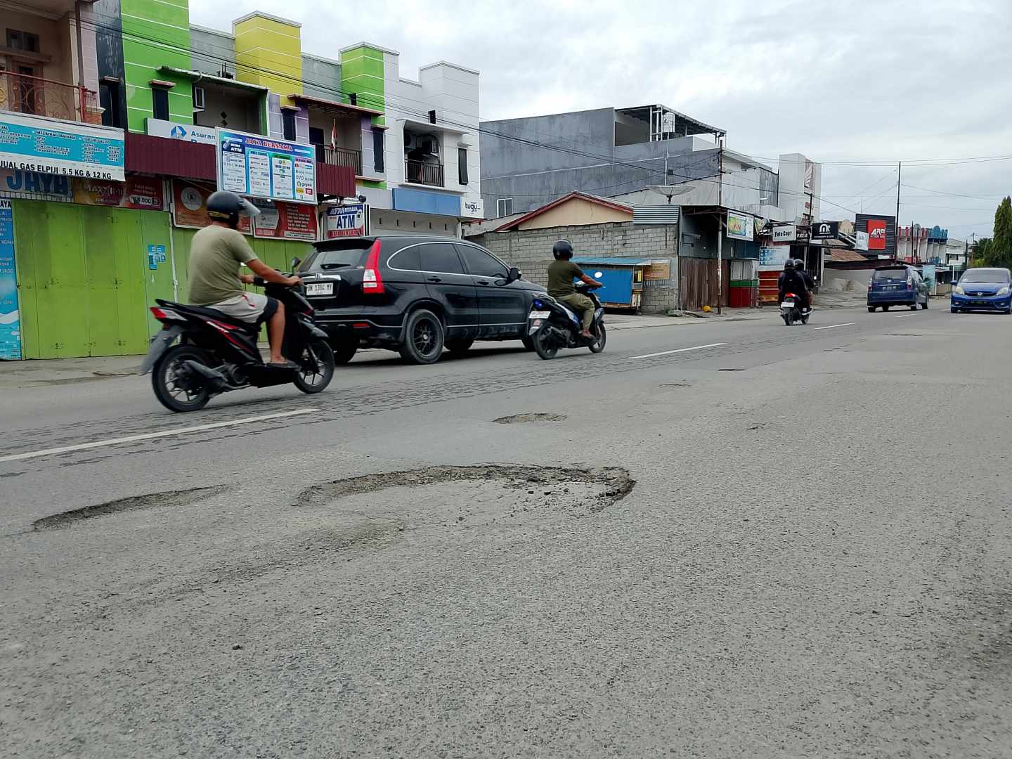 “Jalan ini makin dalam lubangnya, dan bahaya kita naik motor tidak lihat,” ungkap Pak Rin, seorang pedagang yang sehari-hari berjualan di sekitar lokasi.