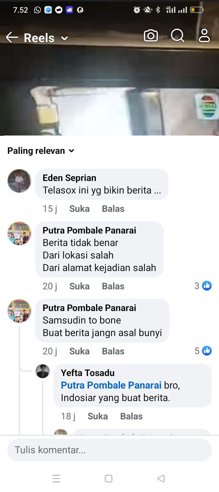 Namun, sebuah komentar di Facebook yang bernada kasar dan kata kotor terhadap jurnalis Indosiar menuai persetujuan dari kalangan wartawan. Akun Facebook bernama Eden Seprian menuliskan komentar yang dianggap menghina dalam sebuah unggahan yang membagikan tayangan Indosiar terkait kasus tersebut.