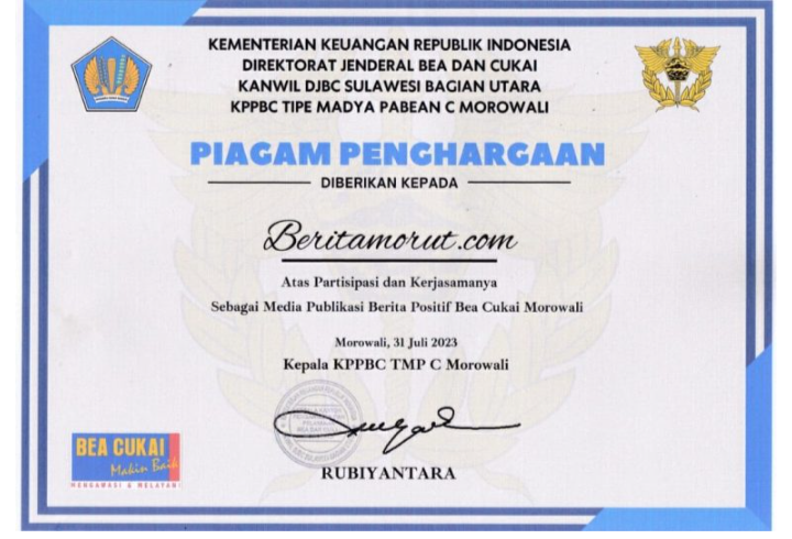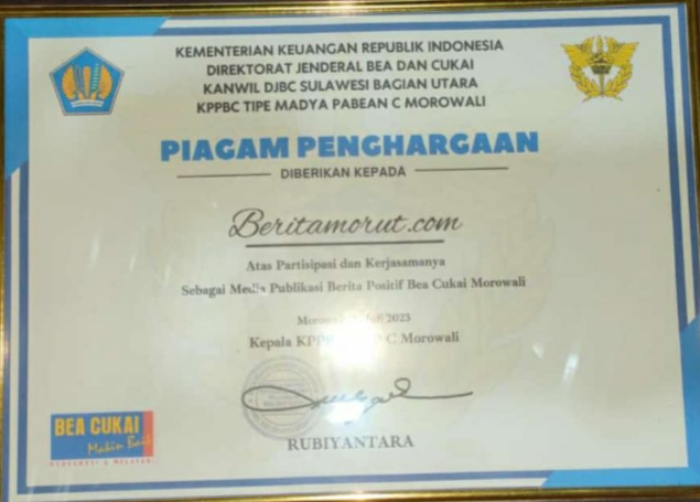 Tak lama berselang, penghargaan ketiga diberikan oleh Kementerian Hukum dan HAM Republik Indonesia. Hendly menerima langsung penghargaan itu dari Kepala Kantor Wilayah Kemenkumham Sulawesi Tengah, Budi Argap Situngkur, sebagai bentuk pengakuan atas peran aktif Beritamorut.com dalam menyebarluaskan informasi terkait kegiatan di Lapas Kelas III Kolonodale.