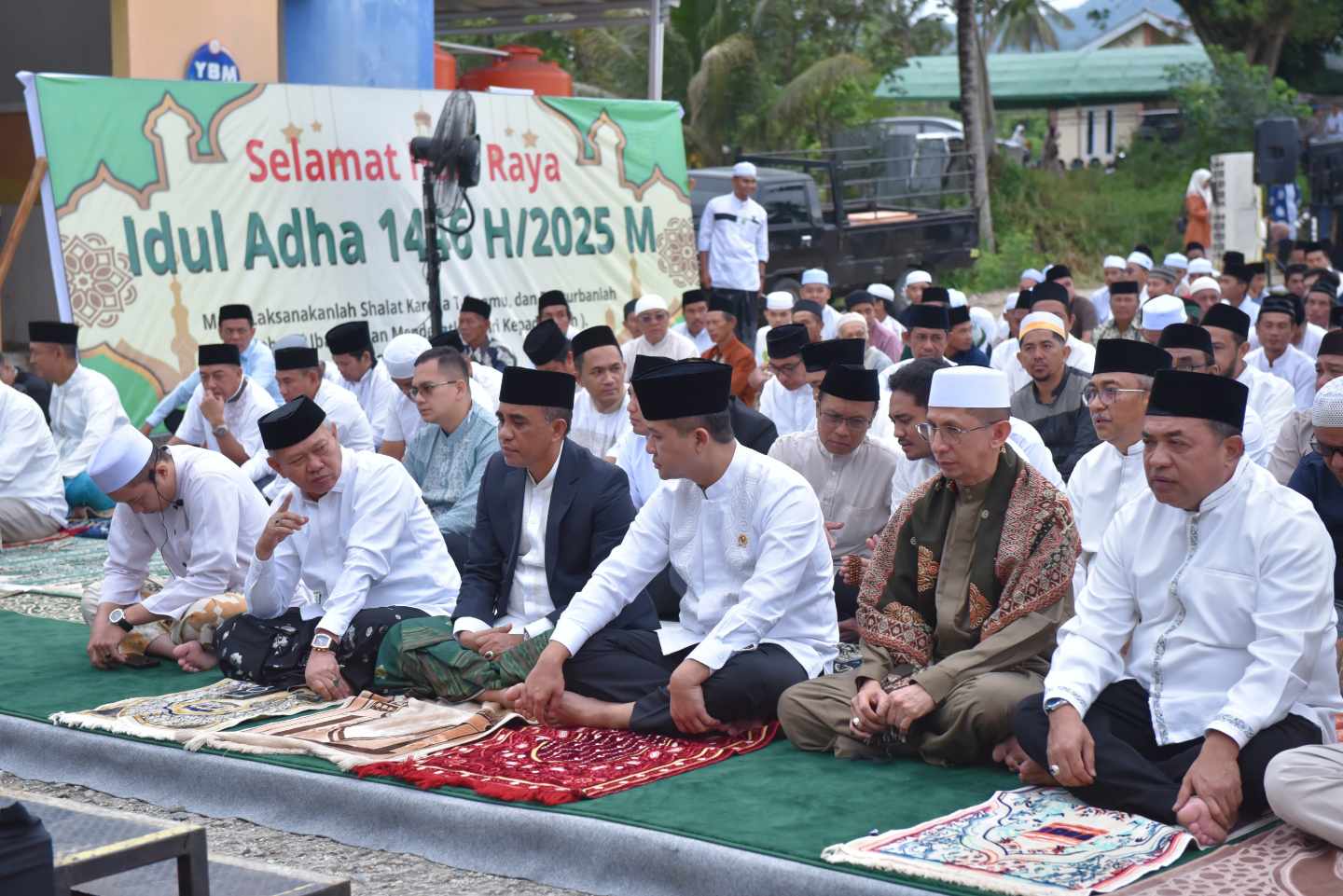 SULTENG- Menteri Transmigrasi Muhammad Iftitah Sulaiman Suryanagara melaksanakan sholat Idul Adha 1446 Hijriah bersama Gubernur Sulteng Dr. H. Anwar Hafid, M.Si dan Ketua TP PKK Ny. Sry Nirwanti Bahasoan Anwar di Masjid Raudhatul Jannah, Kabupaten Sigi pada Jum’at (6/6/2025).