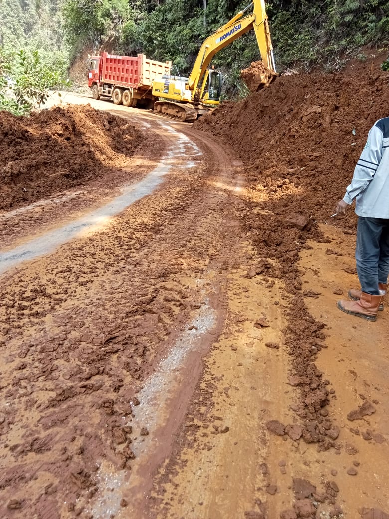 Berdasarkan keterangan visual yang disertakan Richard, tampak alat berat jenis ekskavator dikerahkan untuk membersihkan tumpukan tanah dan material longsor yang menghalangi akses jalan. Sebuah truk juga terlihat bersiap untuk mengangkut material longsoran yang telah dikeruk.